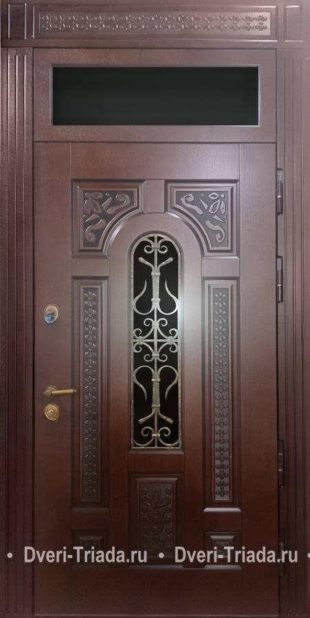 Термодверь с влагостойким МДФ, ковкой и остекленной верхней вставкой Арт-19