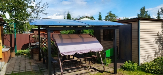 Полуарочный навес из поликарбоната для зоны отдыха на даче Арт-671